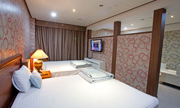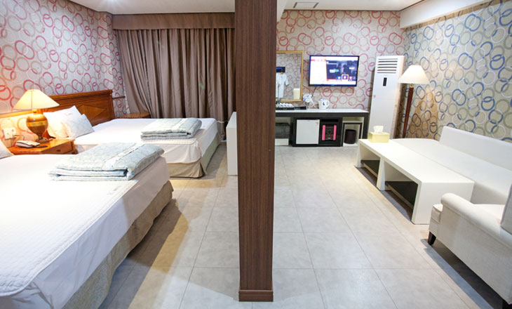 더블침대 2, 고급소파, 벽걸이 TV, 살균기, 대형 욕조